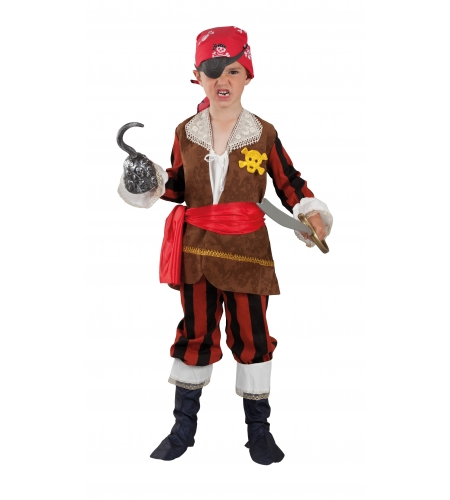 Este completo disfraz de pirata bucanero infantil está disponible en diferentes tallas para que selecciones el la que más se ajuste a lo que buscas.