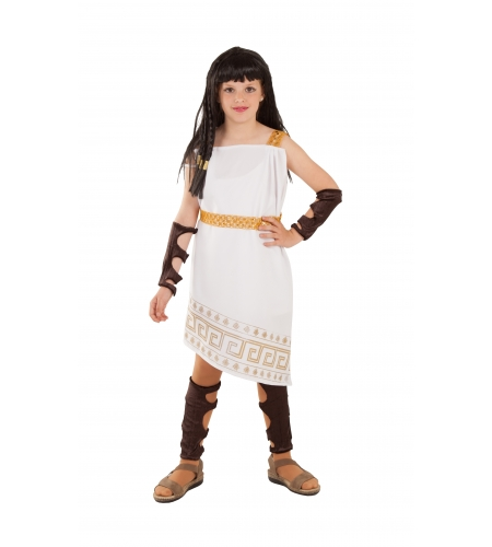 Disfraz fabricado en tallas 6, 8 y 12 años e incluye: Vestido, cinturón, muñequeras y espinilleras.