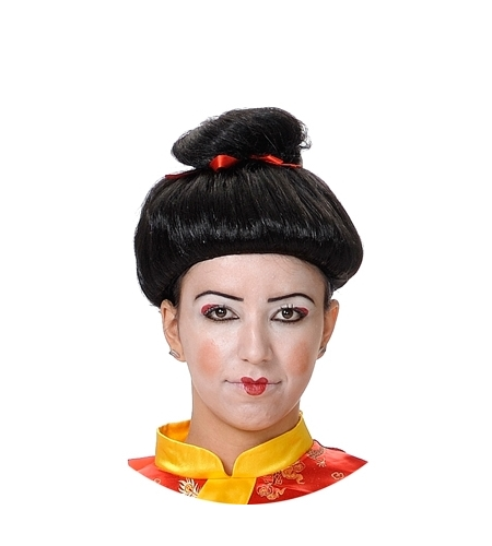 Comprar peluca gheisa negra en la tienda de disfraces Comarfi.